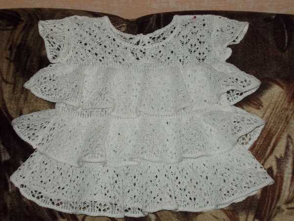 Связалось детское платице из хлопка, для крестин. Девочке нет еще 6 месяцев. Махонькое.