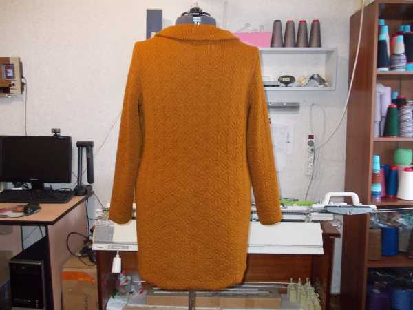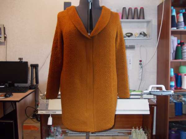 Выложила две фотки выкройки, вторая вроде по ярче. Мерки естественно брала свои побольше на 2 см по окружностям. Приталивание не делала, вязала по прямой. Убавляла так: с передней игольницы, перебрасывала петли на заднюю и закрывала. Прибавки делала, выдвигая с каждой стороны на ЗИ и ПИ по игле. Планку вязала 30 рядов "велле". Воротник вязала полным ластиком, второй вариант 60 рядов,подвернула.:vyaz: