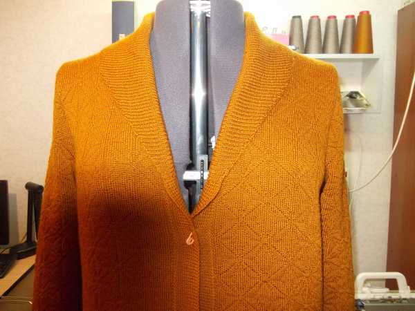 Куртка связана рельефным жаккардом из белорусской полушерсти в 3 нитки, цвет рыжик, узор №16 по желтому каталогу для Бразера. Застежка молния разъемная и кнопочки.