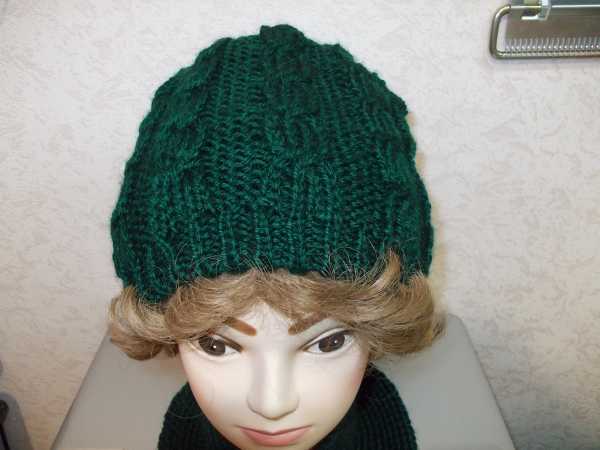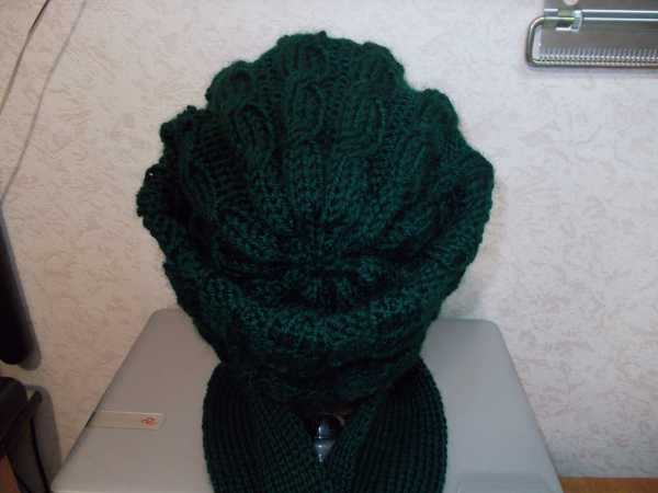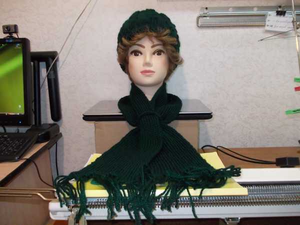 Комплектик из шапки, косы 2х2, и шарфика резинка 1х1 из пряжи белый леопард. Связана на машине 3 класс.