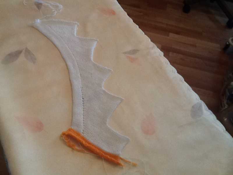 А вот выкладываю что получилось на машине у меня. Правда на один уголок я связала меньше просто нечаянно срезала сама и не стала время тратить на поднятие петель и получилось 4 уголка надо 5 . Начала справа но надо лучше слева потому что легче справа закрывать петельки будет но и размерчики у каждого свои. Я набрала 35 и каждые 10 петель перебрасывала через 2 ряда таким образом получаются новые петельки и после 24 рядов закрывала 16 петель слева и так получался уголок. И вновь все как бы сначала.