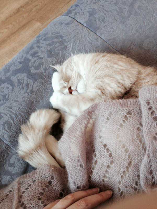 Девочки, привет!!! Давно связали, но все не можем сфотографировать, а тут вижу у неё фотографию -в тихушку примеряет :wink: , ну я на радостях делюсь с вами :flowers: Пряжа KID ROYAL 50 62% кид мохер 38% полиамид, 500 м/50 гр., расход 200 гр.