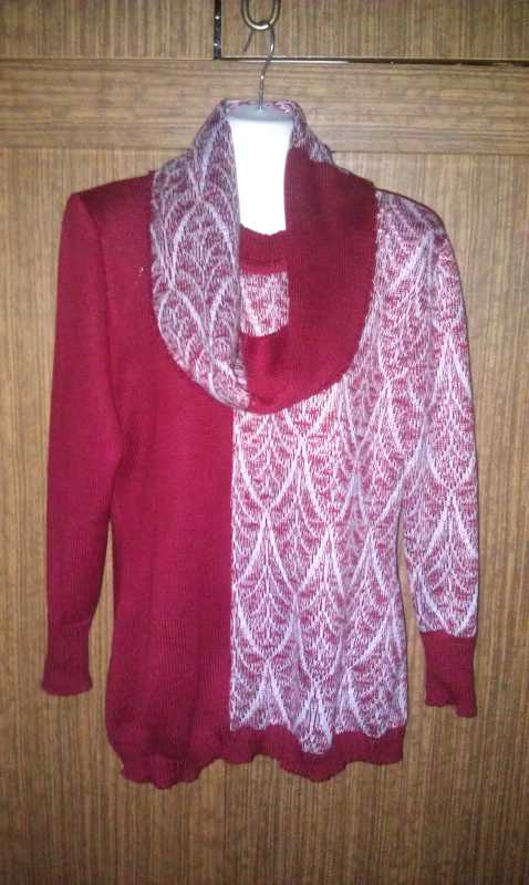 Девочки связался еще один свитерок, фигура у женщины сложная,талия 80,бедра 118,короче резкий преход ,но вещи на ней сидят хорошо,поэтому внизу так смотрится вещь некрасиво,а длина рукава тоже маленькая 53. Вот такой заказик.