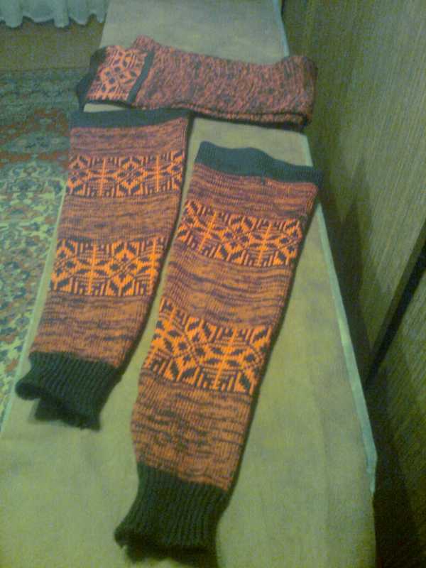 Девочки ,здравствуйте,что успела сфоткать выставляю на ваше обозрениеЮгетры в комплекте с шарфиком к шапочке,которая связана раньше. :flag: :flag: :flag: