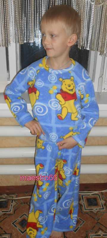 Моя швейная хвастушка внуку - пижама.Приехал на каникулы,срочно попросил сшить пижаму,у него уже была пижама из флиса,стала маленькой.Магазинная трикотажная не нравится.Приехал вместе с материалом.Не много не угадали с кол-м материала,пришлось брюки химичить,немного рис. не сходиться,ну ладно зато тепло.Очень люблю шить!!!