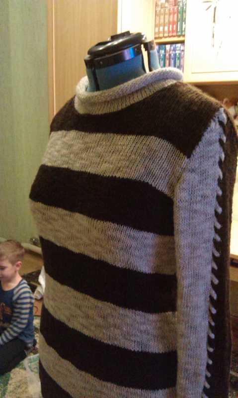 Здорово все связано, Эльвира! А горловину в сером джемпере руками обрабатывала ?