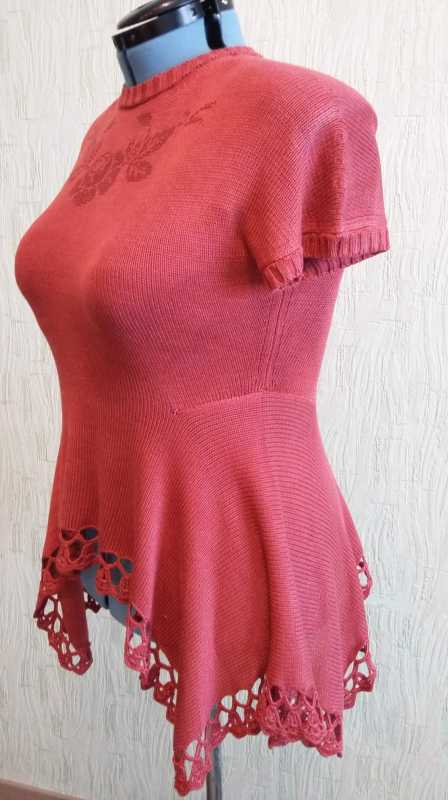 Очень интересный крой, да и розочку перекидывала с фонтуры на фонтуру. Умничка. И из мохера очень понравился. ЧУдные ниточки.