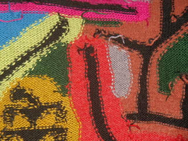 Привет ,девочки !! Пытаюсь скинуть фотки джемпера связанного вручную, из остатков пряжи. Идея взята из старого журнала по вязанию. Абстракция..