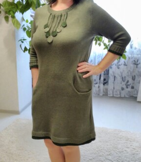 Выкройку сама расчитывала , пряжа подойдет и белорусская п/ш , у меня наподобие , но точно не могу сказать , брала я ее давно на трикотажной фабрике...Модель из просторов инета , называется - туника с карманами....Я вязала как платье...на машине...