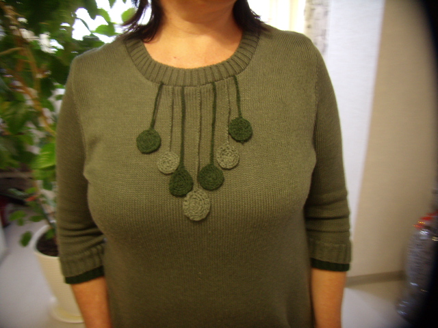 украсила платье деталями , висюльки :vyaz: крючком , и к низу , для сочетания , более темной нитью вторую резинку...Так платье все таки смотрится п овеселее.... Приятно. что оно вам понравилось.... :flowers: