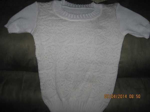 Свитер дочери, беларусский акрил в 3-и нитки (мне кажется толстоватый), ручная деккеровка