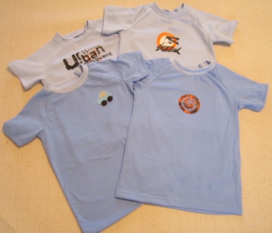 Еще подарки, для внука теперь нашила ему футболок. На одной вязаная машинка, это ОляК мне присылала в подарок. На других наклейки сделала, детского у меня под рукой не было. А эти я давно для своего сына покупала. Так что как говорится- я его слепила из того, что было.
