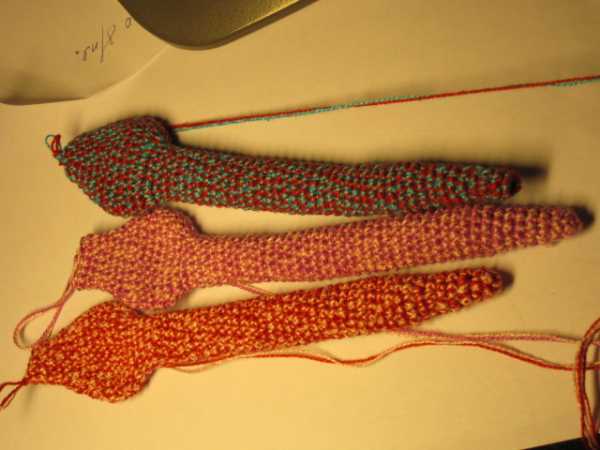 На отдыхе связала вот такие шкурки (придумывала на ходу)