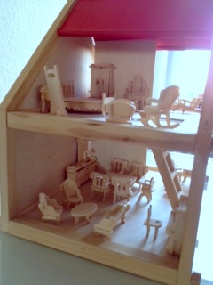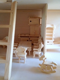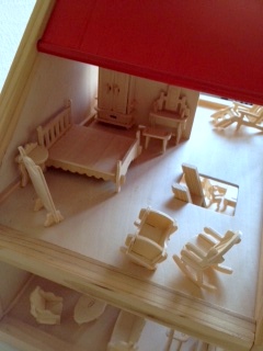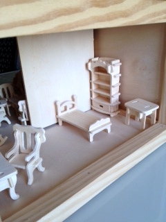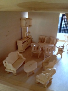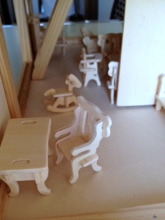 Ребёнок (а покупалось для неё) через пол часа переключилась на другое занятие, я же просидела часа полтора - не могла остановиться :haha: , надо бы еще покрасить. Мебель вся собрана из деталек маленьких - она сама очень маленькая. Домик папа подарил год назад, а мебелюшку всю растеряли-разломали.