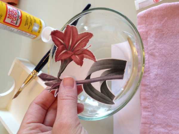 Аккуратно вырезаем из декупажной карты наши декоративные элементы, опускаем на секунду в воду