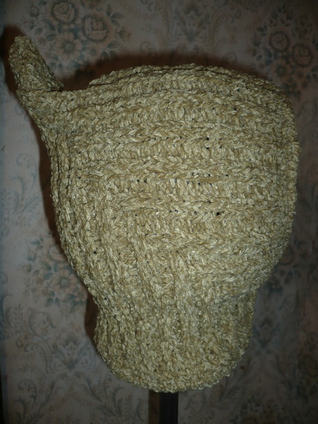 шапочка Эльф для внука пряжа велюр в 2 сл.спицы