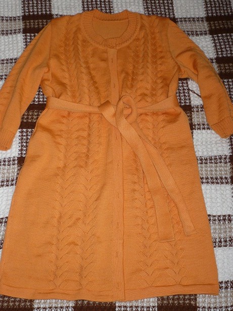 Вот связался кардиган ог 105.об 120.пошло 850 гр.пряжа семеновская п\ш.первый раз связала оказался узким .\надо за неделю связать\ вечером в среду с мужем распускали при этом вспоминали мару.медлено без нервов распускаем и потихоньку все перевязываем.муж пыхтит над чайником нить выравнивает.а я бегом вяжу спинку.на утро с 8 вяжу перед и рукава при этом делала ручную деккеровку. к вечеру все было готово.в итоге вот что вышло :vyaz: