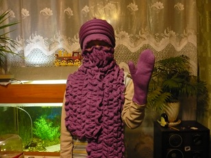 Татьяна, прекрасные работы! кардиган :good: :good: :good: :good: :good: и цвет приятный и исполнение на высшем уровне. Голову, руки и ноги утеплили красиво :wink: