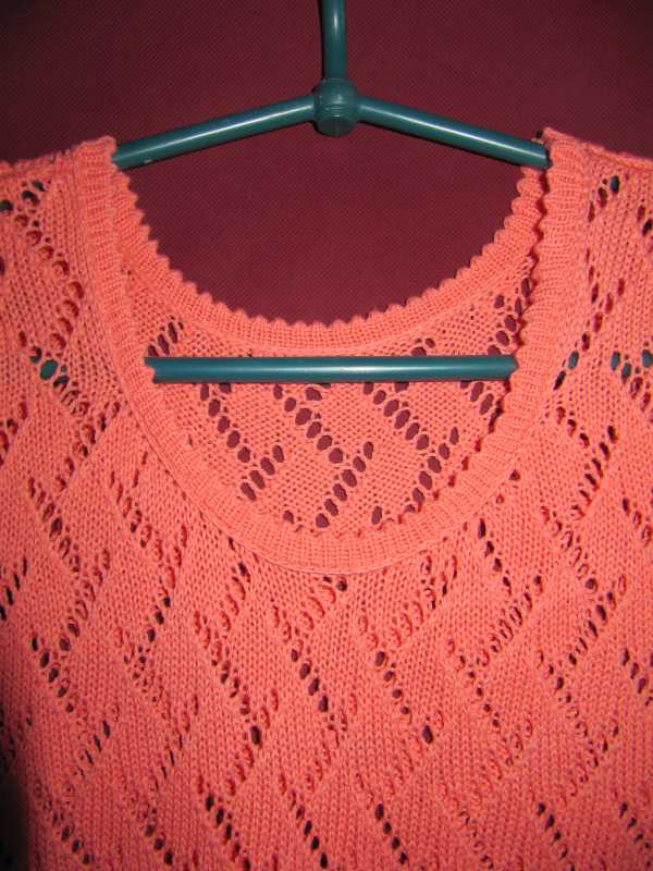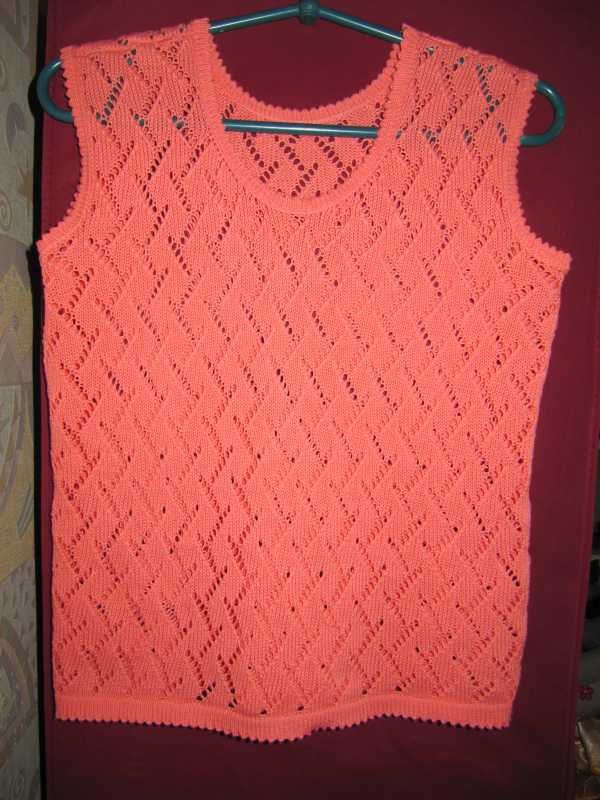Здравствуйте девочки! Вернулась на Украину(работала в Польше), 1.5 года не подходила к машине. Все забыла напрочь, сижу потихоньку вспоминаю. Дочь попросила связать летнюю майку. Связала, в плечах немного широковато, но ничего, будет носить) Хлопок(Турция), в три нити, пл.5