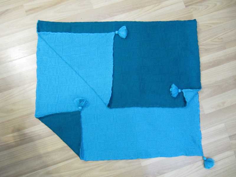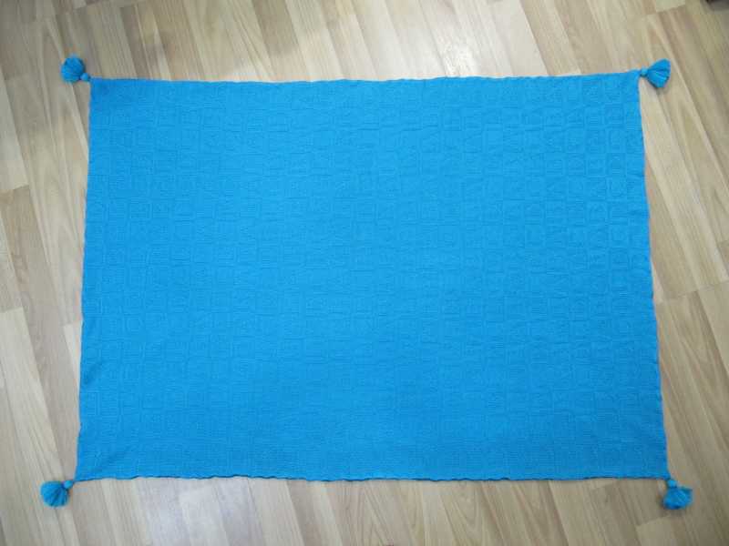 Так как я теперь бабушка, связала внуку плед))) Так как крючком вязать не умею, края ничем не обвязывала, а украсила просто кисточками) Плед двухсторонний, было связано два полотна и сшито на кетеле. Вязала робот- каретка по жаккардовой перфокарте буквы А.В,С,D. Фотоаппаратом не могу передать объемность букв и мягкость пледа. Нитки- акрил 32/2 в две нити, пл.3. Размер 110х80