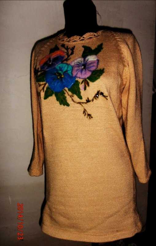Нет я вяжу,и шью, а валяние я попробовала вот на этих первых работах, мне просто нужно было быстро сделать вышивку))), а вышивать заняло бы очень много времени, вот я сделала альтернативу вышивке, мне самой понравилось. Конечно хочется попробовать свалять тапочки но жаль нету колодок, как раздобуду колодки обязательно сваляю и покажу. А так занятие очень даже увлекательное, да и роспись по вязанному трикотажу мне очень нравиться.