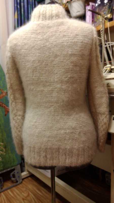 пряжа собачья , ручная для носков , но захотели связать вот такую кривую пряжа очень косит , и манекен весь на ладом дышит , получилось по моему нормально спинка только подкачала надеюсь после стирки встанет ровнее
