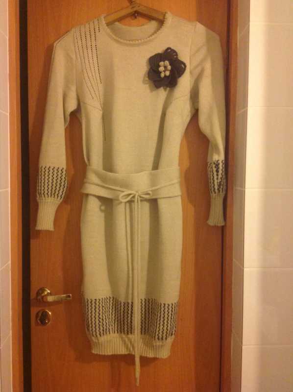 Добрый день, девочки! У меня связалось платье. Себе. Первый раз вязала из белорусской пряжи, спасибо большое Ирине, ниточка хорошая. Цвет жемчуг. И первый раз вязала платье. Но, ничего сложного - по программе - спасибо Ане. Цветок связался крючком по очень понятному видео-уроку с сайта