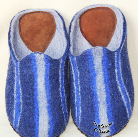 Заглядываю редко, перед новым годом заказов много. Вот на заказ валяла мужские тапочки.