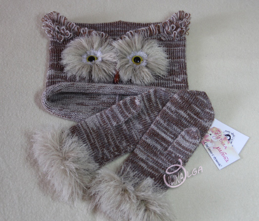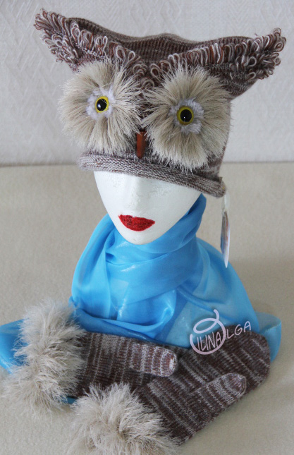 У меня как обычно и валялочки и вязалочки. Шапочка "сова" + варежки