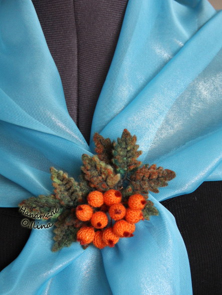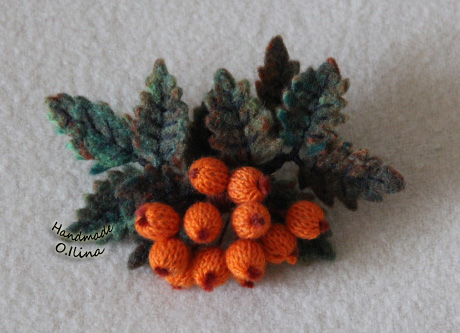 Вот такая брошь "Веточка рябины" (Валяние+ вязание)