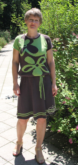Для себя связала костюм: Кофточка + юбочка(6 клинка) . Интарсия. Пряжа хлопок/лен.