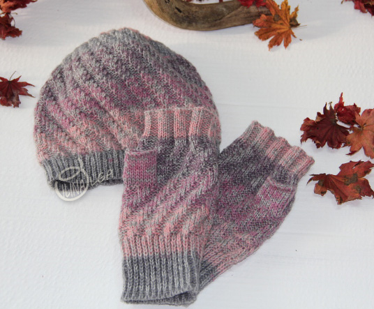 Остаточки пряжи долго лежали, соединила еще с какими то остатками и вышел вот такой наборчик. Шапочка + митенки.