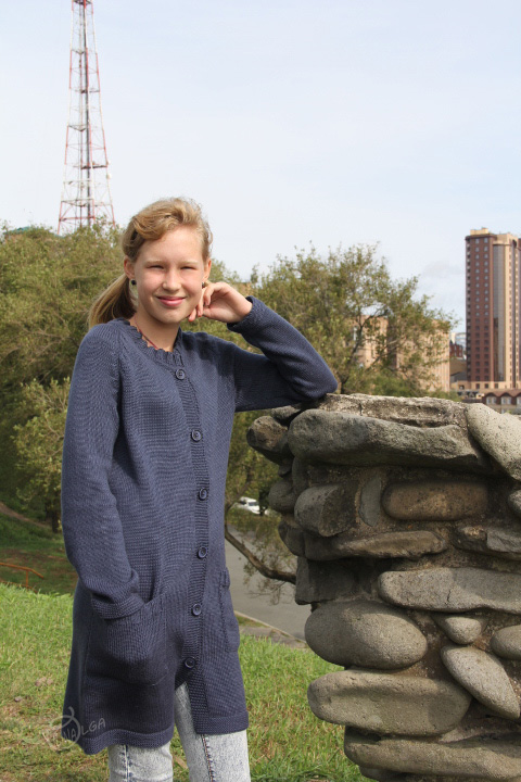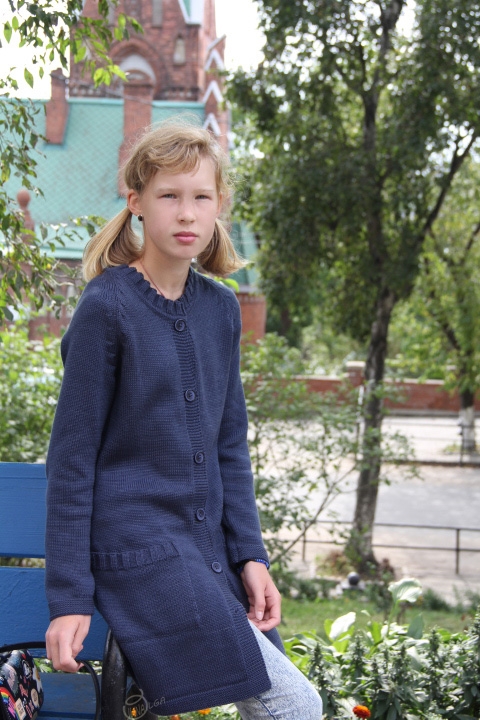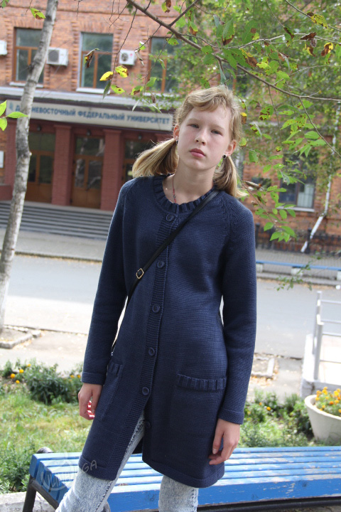 Какие прекрасные изменения произошли на форуме. Все реже стала заглядывать . Затянуло меня валяние в свою сеть по самые уши:haha: Вяжу теперь только по необходимости. Вот связала дочке кардиган в школу. Пряжа Шенгтай (хлопок + шелк) моток 200гр метраж 490метров. Вообще это для ручного вязания. Но попробовала на машине, очень понравилось вязать из нее.