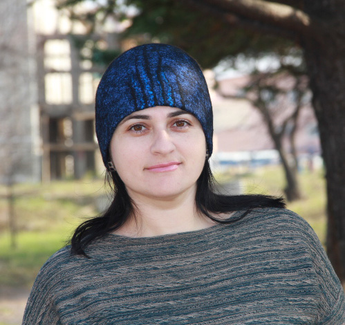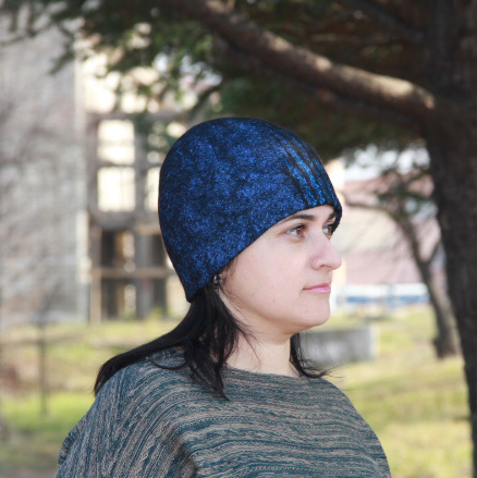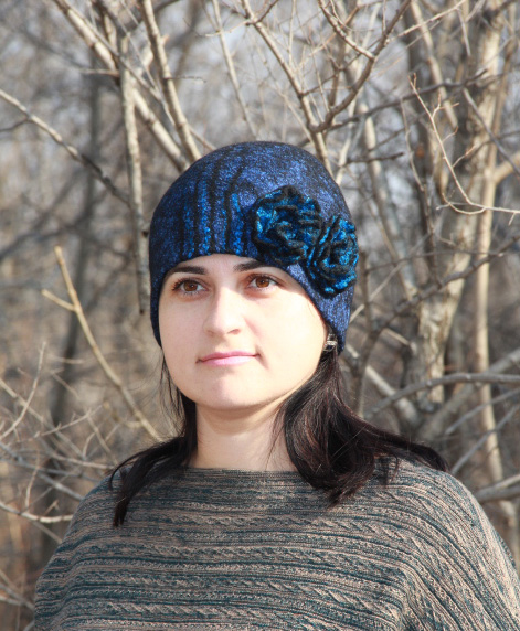 Шапочку валяную из тончайшего мериноса с заливкой синего шелка тусса я еще не показывала.