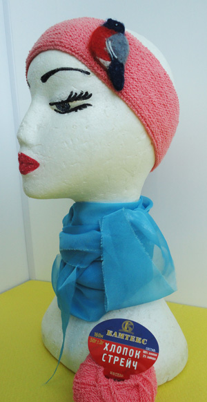 Ободок из стрейч хлопка, на весну. Брошь сухое валяние.