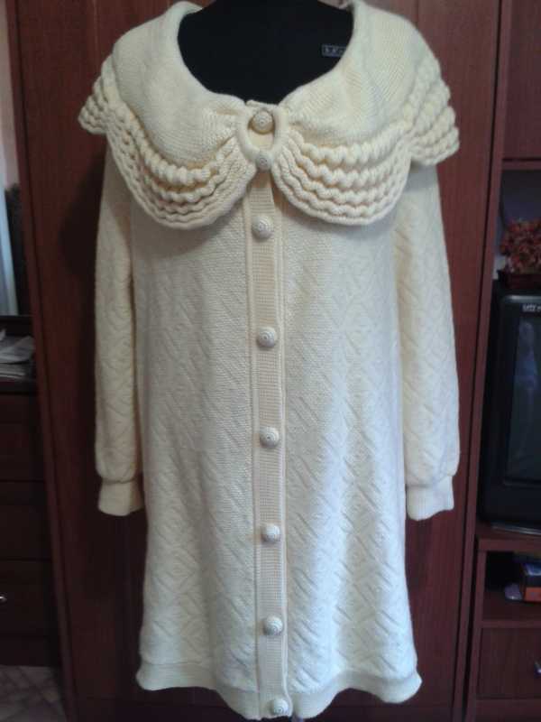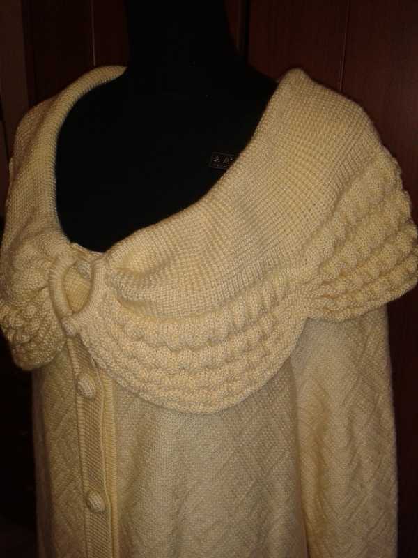 ЛД №3/2007. Вязала "волны", потом жемчужную резинку. Воротник из 2-х половин, сшивала посередине. Ну, и стянула "волны" в 7-ми местах, а то форму не держал, тяжелый очень