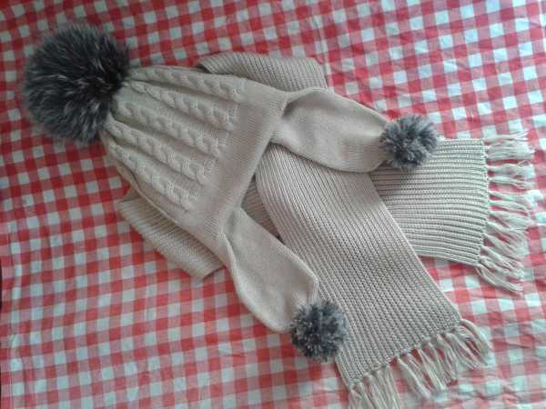 Заказ на девочку 7 лет. Шапка двойная (за помощь спасибо Олесе и Эльвире :kiss: ), уши хотели подлиннее и не сшивные, пришлось думать, как их сделать цельновязанными. Помпон заказчиков, по цвету не стреляет, придумала на уши свои помпошки, что хоть чуть гармонии было. Шарф рыбацкой резинкой.