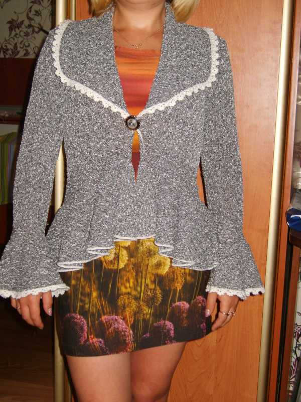 На сером жакете, пуговку заменила вязанным цветком, только фото так и не сделала. :cheer: