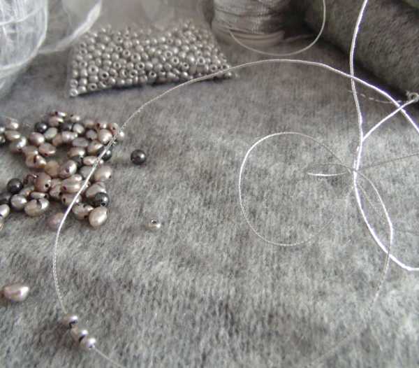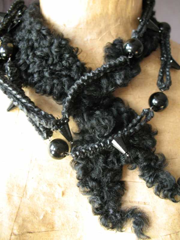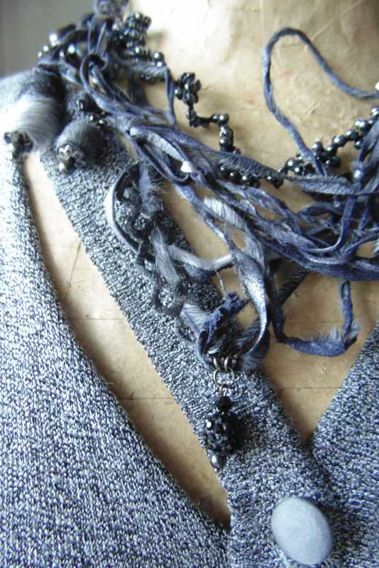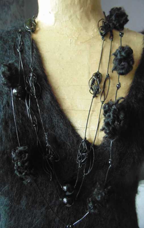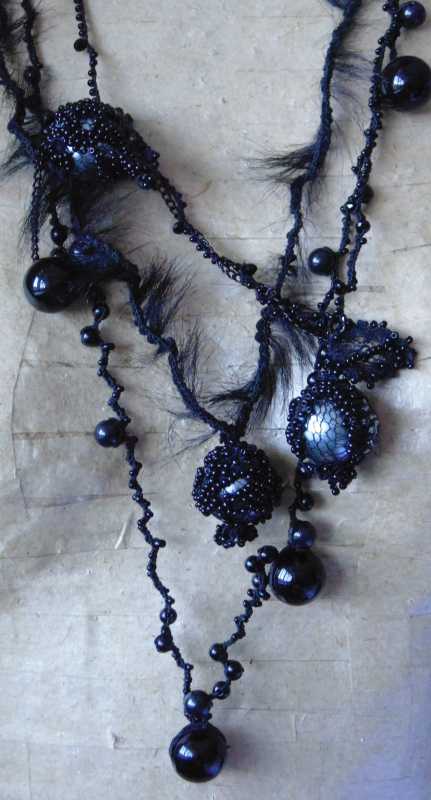 Твидовая шерсть,вискоза и меховые бусы: