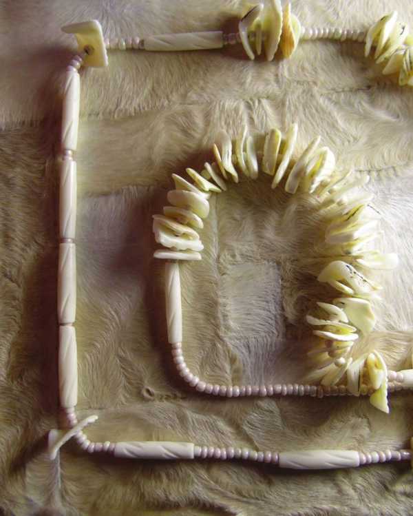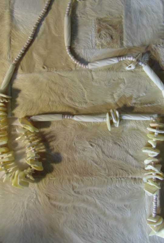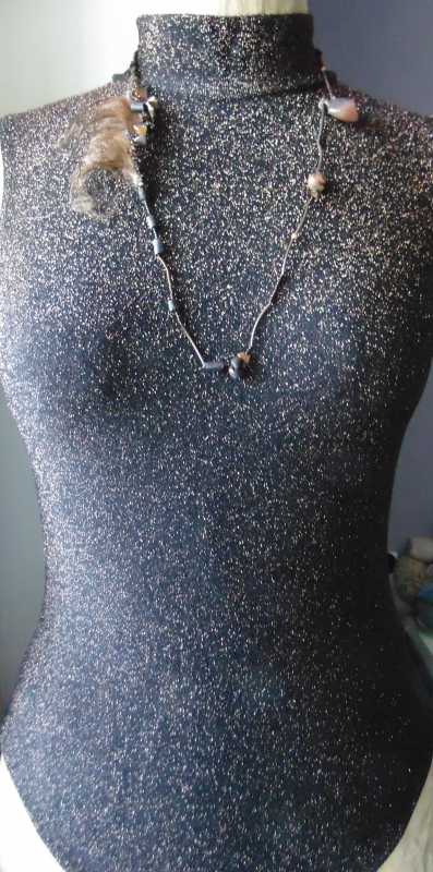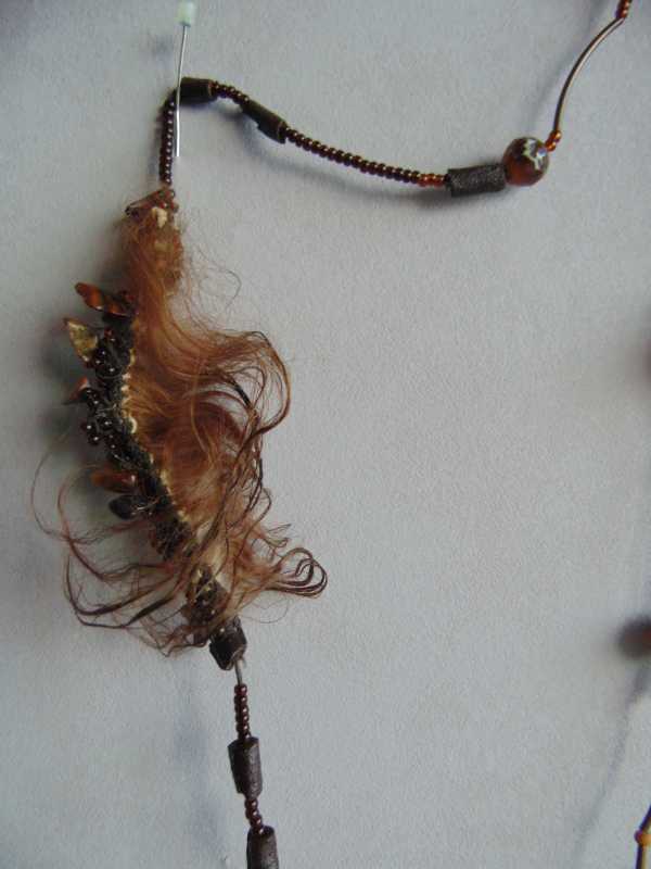 Ожерелье из варёной кожи,бисера, агатовой крошки и вязаного меха козлика