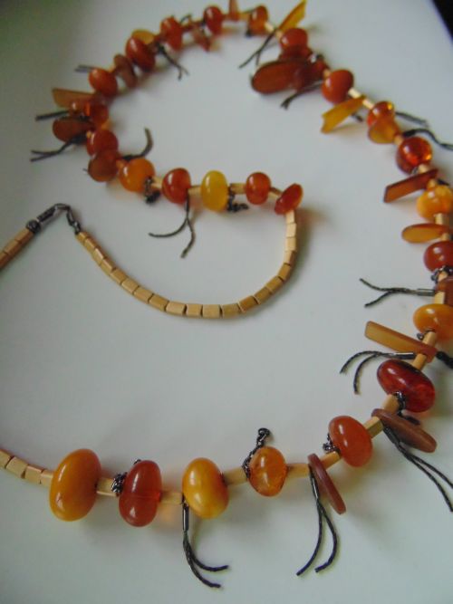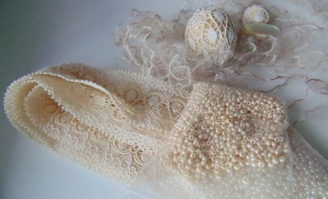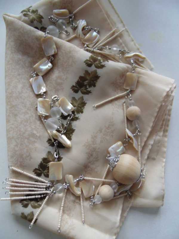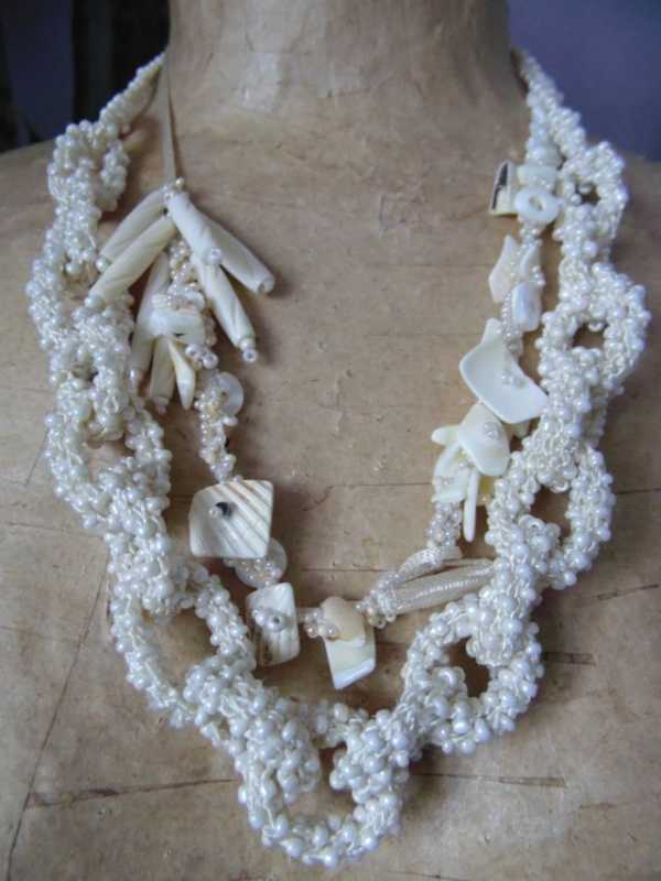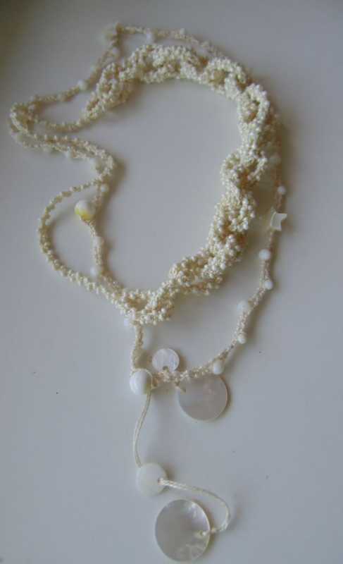 Два ожерелья из бисера на шёлке, связанного на машине + перламутр + белые агаты.