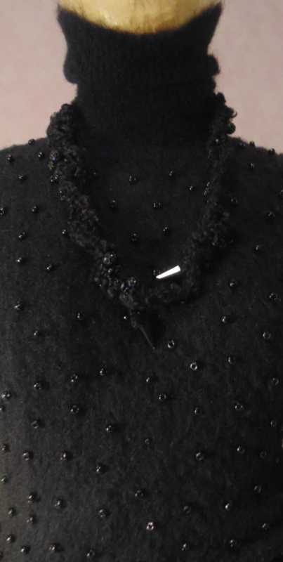 .....Вяжу на машине украшение из церковного серебра и металлической патированой цепочки,- плотность- 3: