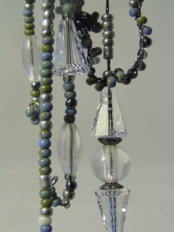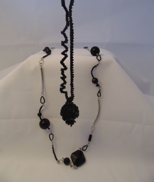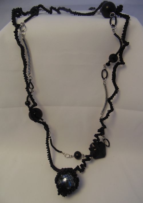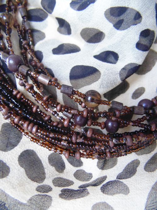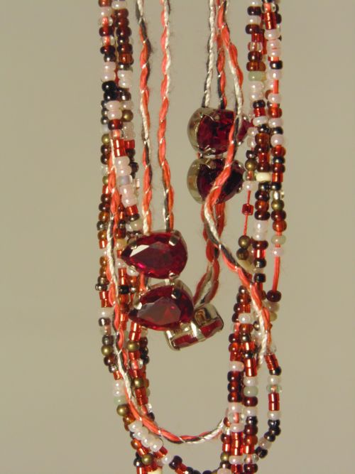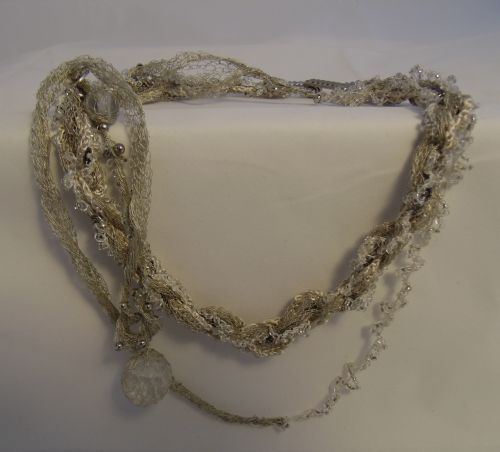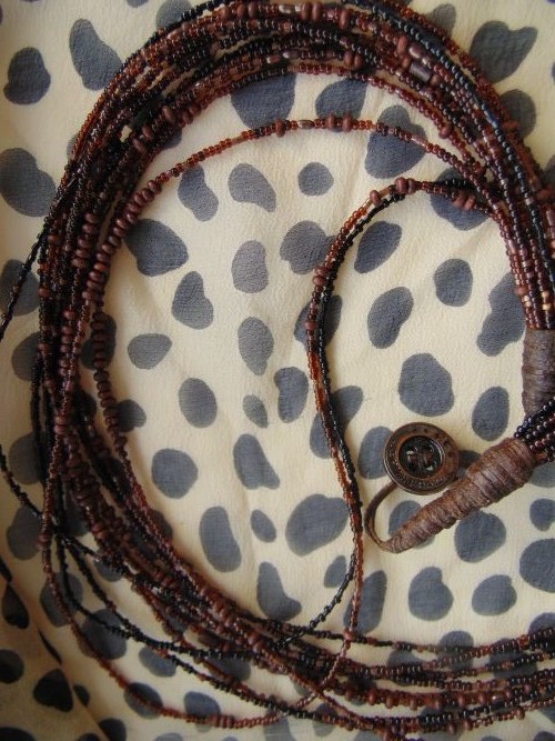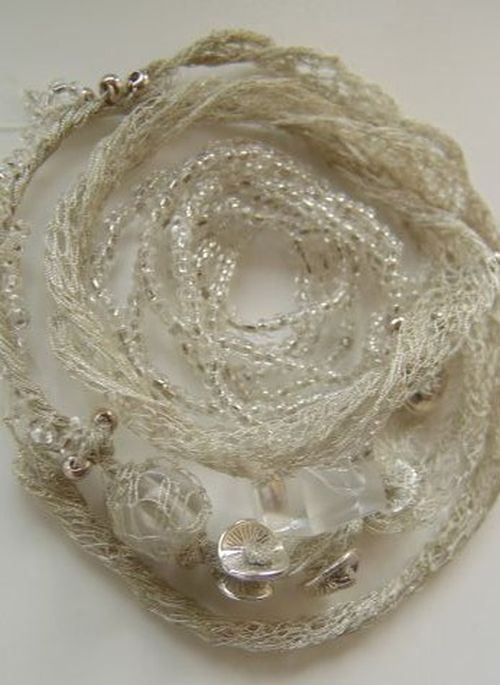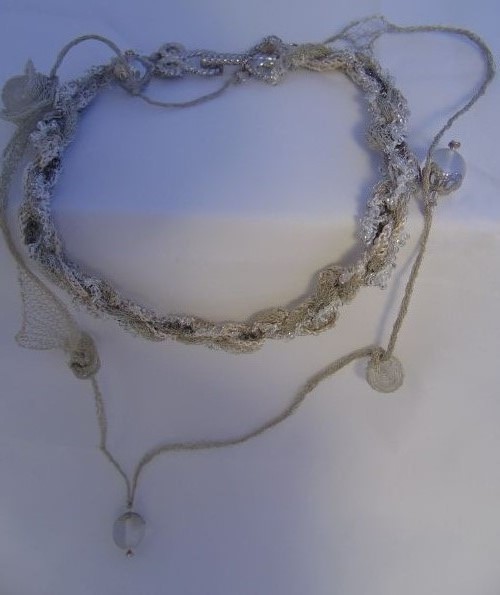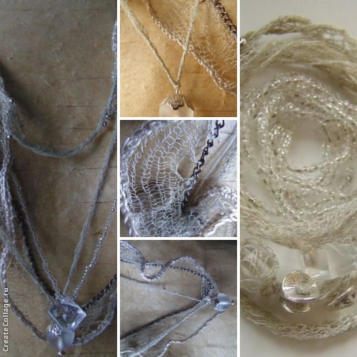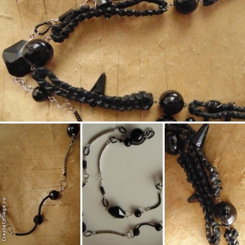 Пара бус, вязаная кожа, агаты, хрусталь