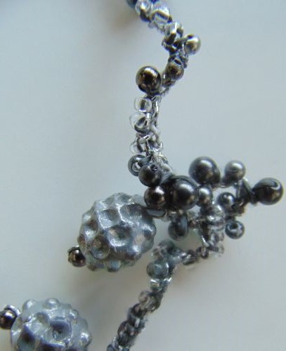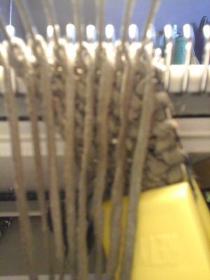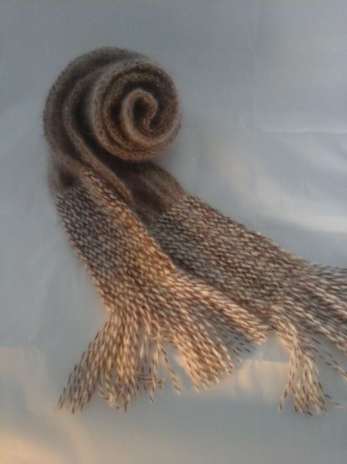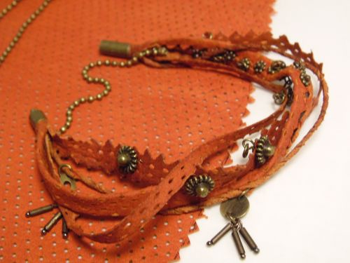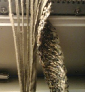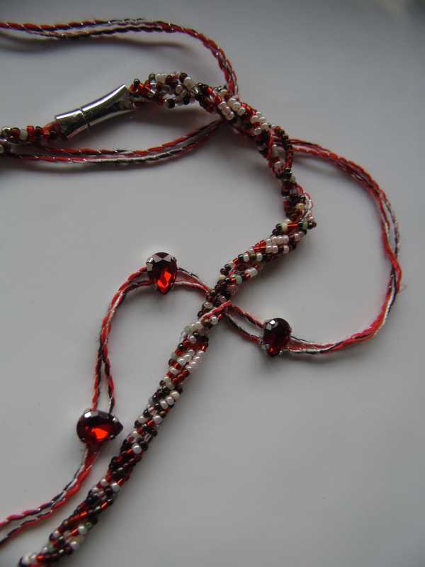 Вяжу ожерелье из замши- вивинг на 8 петлях, убавляя и прибавляя по одной петле с каждой стороны-получается скручивающийся жгут: