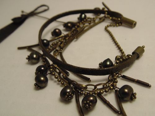 Браслет из перфорированой кожи + бусы из оникса: