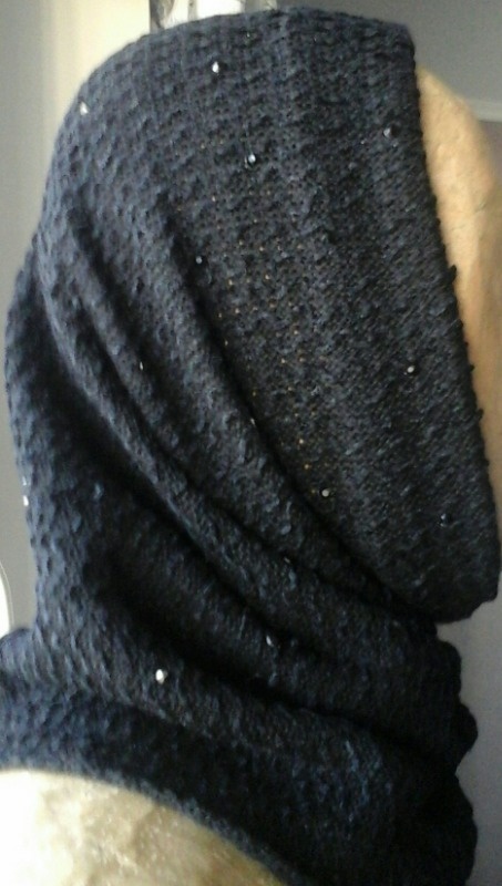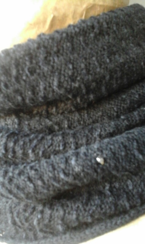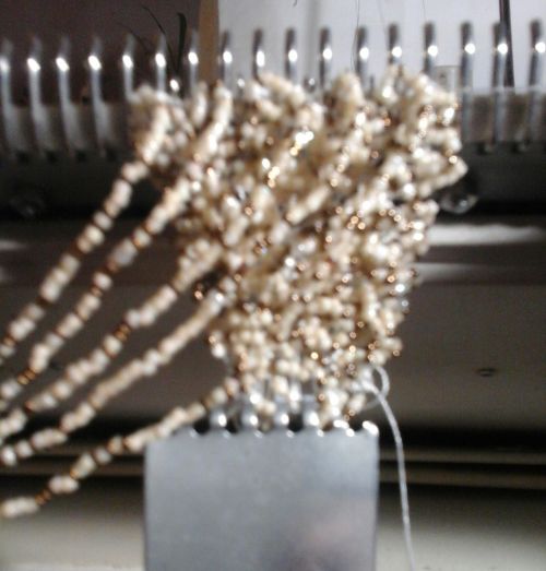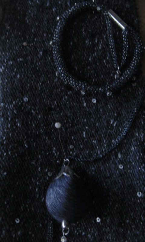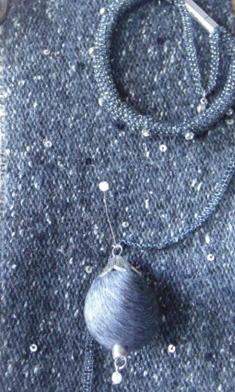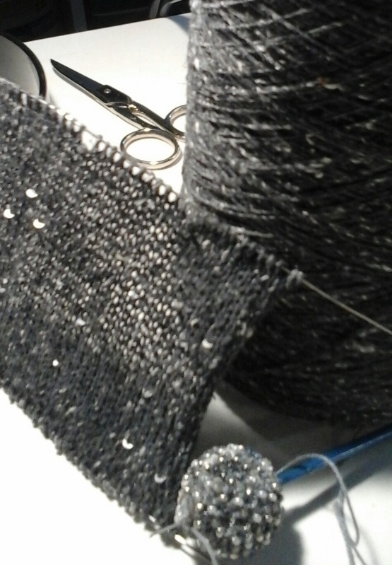 связала ещё одну подвеску из миксованного бисера и пайеток и решила связать на машине водолазку с пайетками....пол-дня искала видео о бисере, кот. ввязывается в машинное полотно, пол-дня ввязывала пайетки на образце...результат не порадовал: