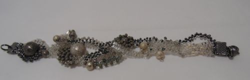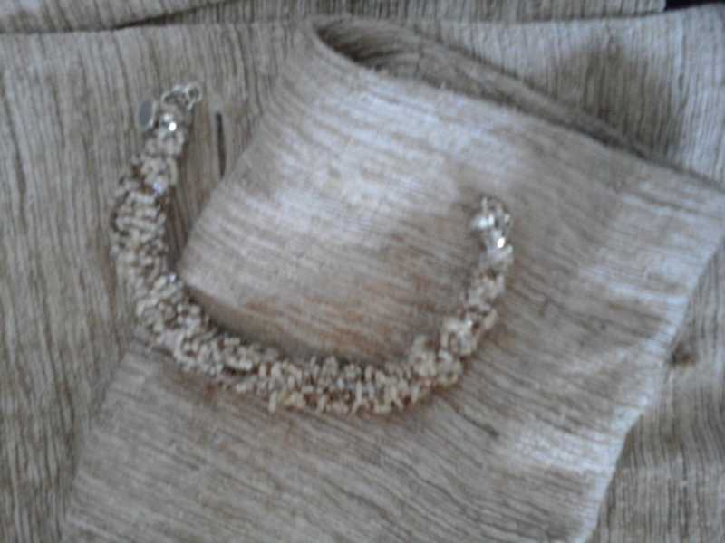 Браслет сплела из бисера и рубки, которые спорола с индийского топа( купила в дисконте- думала,что это- вышитая шёлковая юбка!)