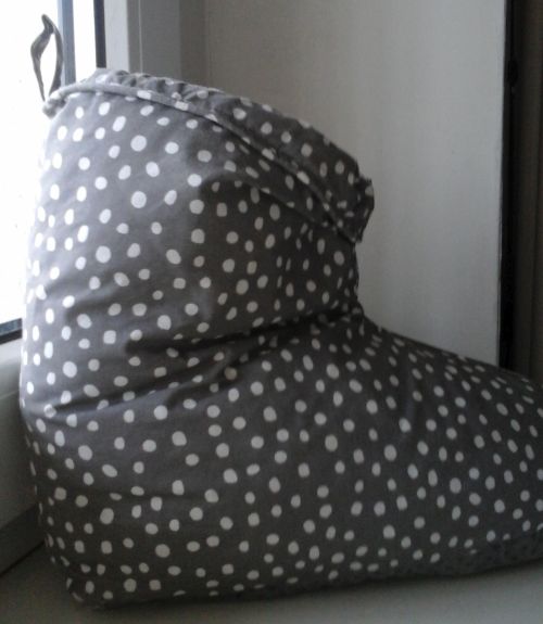 Реставрация домашниих "угг" из текстиля- протёрлись подошвы, пришлось выкроить из старой лакированой сумки, серые и белые горошки- краска"Декола":