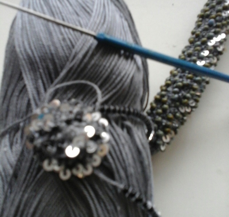 Из-за дачи не успеваю вязать на машине, "поковыряла" немного крючком( МК Карины Турчиной по обвязыванию бусины пайетками, добавила неликвидный китайский бисер)