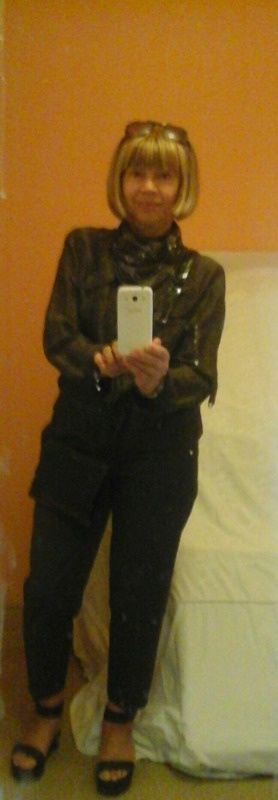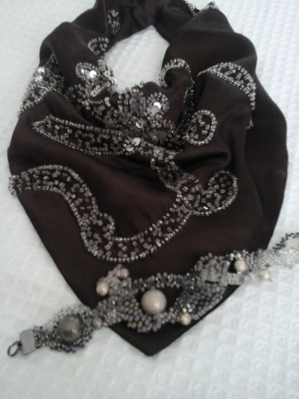из оставшегося куска сшила косынку к шёлковому жакету + коричневые х\б брюки: